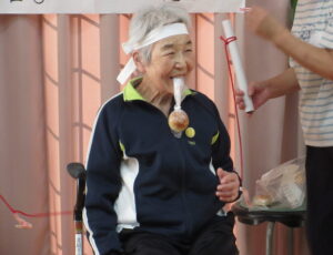 みなさん楽しみにされていたパン食い競争は、少し恥ずかしそうにしながらも頑張って逃げるパンを取っておられました☺
